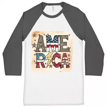 America Graphic Baseball T-Shirt - Independence Day 3/4 Sleeve - Retro Design Raglan Jersey Shirt