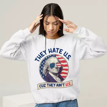 They Hate Us Cuz They Ain't Us Sweatshirt - George Washington Crewneck Sweatshirt - Patriotic Celebration Unisex Sweatshirt