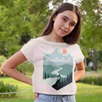 Wanderlust Cropped T-Shirt - Mountains Trendy Tee - Outdoorsy Women's Basic T-Shirt